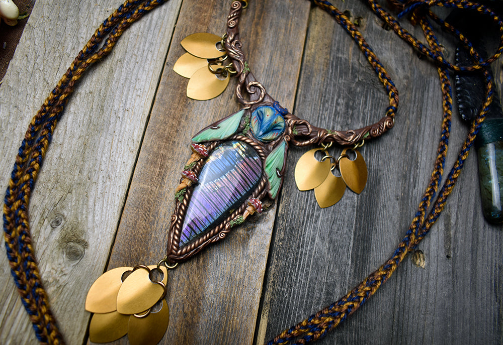 Barn Owl Luna Moth with Labradorite Scale Collar