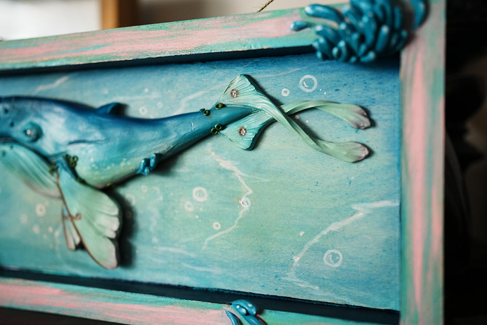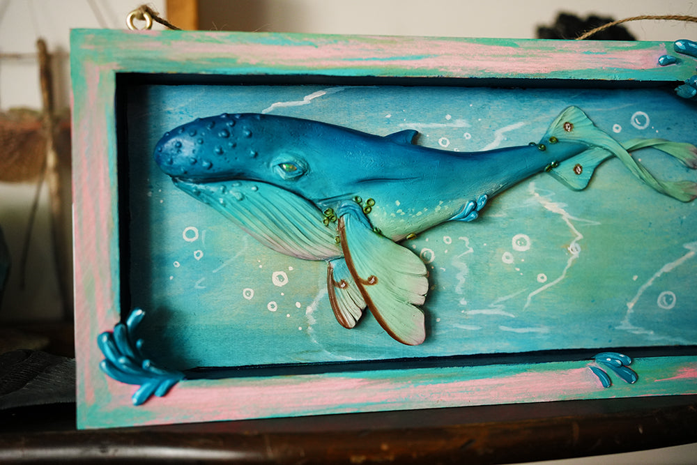 Luna Moth Whale - 12" Wall Sculpture with Ethiopian Opal