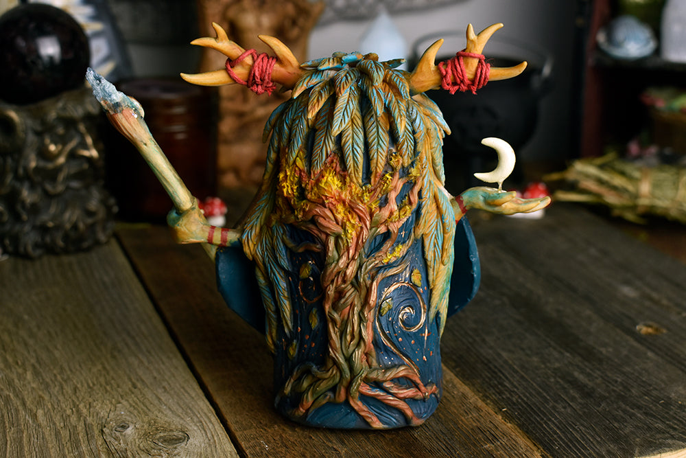 Owl Moth Druid with Aquamarine 5.5" Sculpture